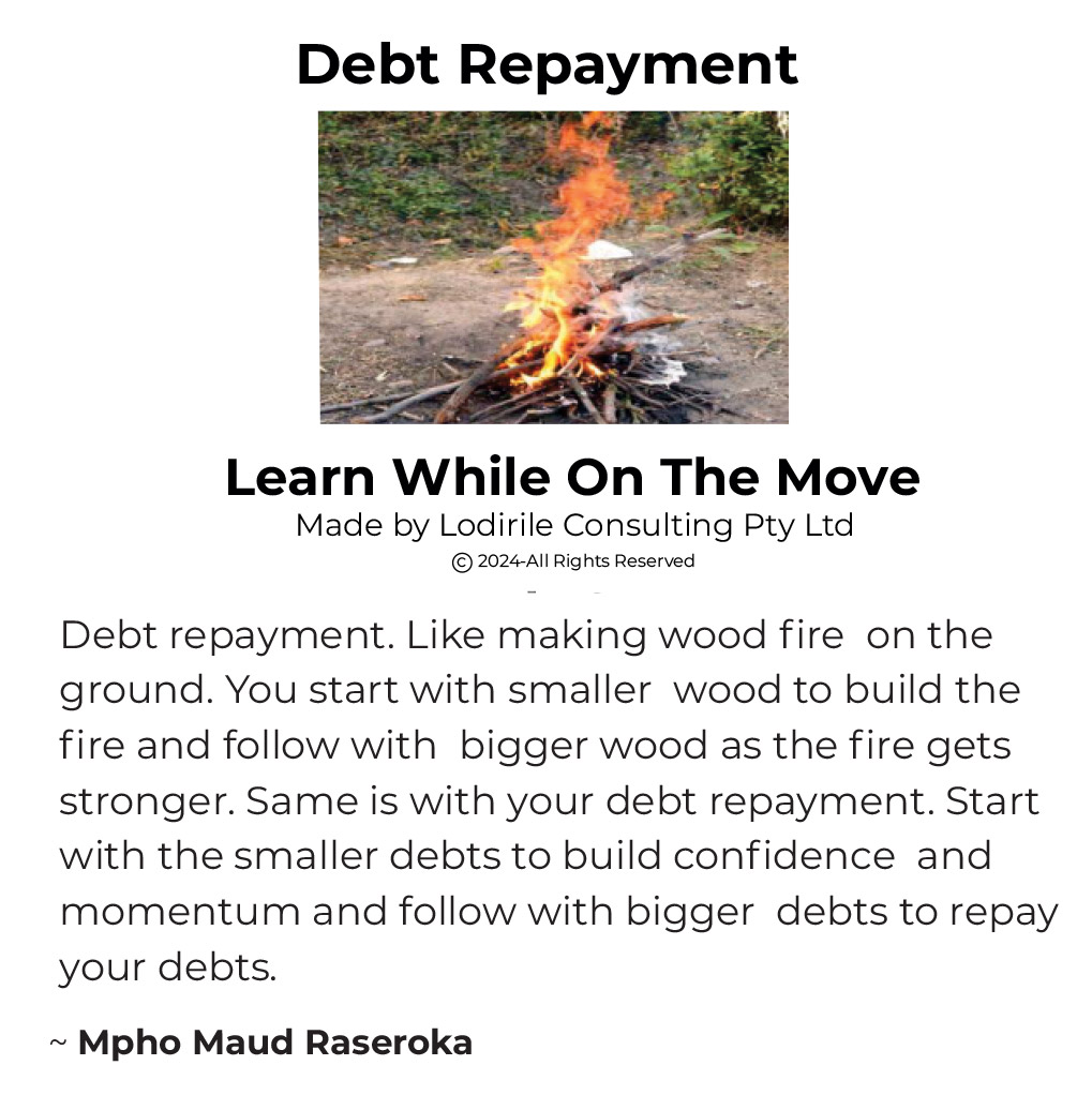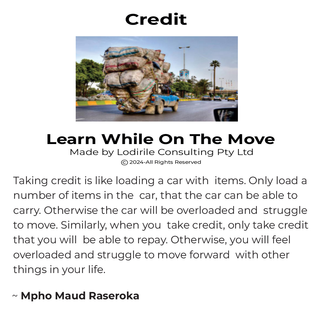 Lodirile Consulting also produces and offers short lessons cards (see attached below) to help employees or consumers to make informed decisions when decisions relating to money matters need to made and to supplement learning beyond financial coaching sessions.
